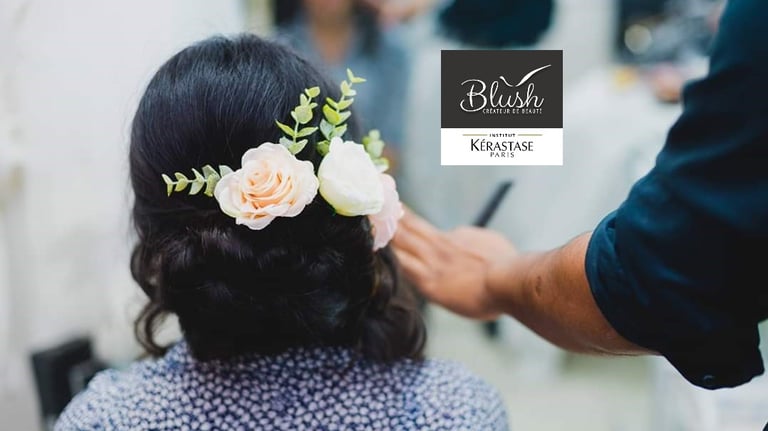 Mariage, shooting ou soirée d’exception : votre coiffure doit raconter une histoire — la vôtre. Chez Blush, nos experts en coiffure événementielle sculptent des créations sur mesure : chignon couture, attache romantique, tresse sculptée ou brushing de star. La fibre est préparée avec Kérastase Elixir Ultime puis coiffée avec la gamme L’Oréal Professionnel Tecni.Art pour une tenue souple et impeccable. Chaque détail est pensé pour sublimer votre beauté jusqu’à la dernière danse.