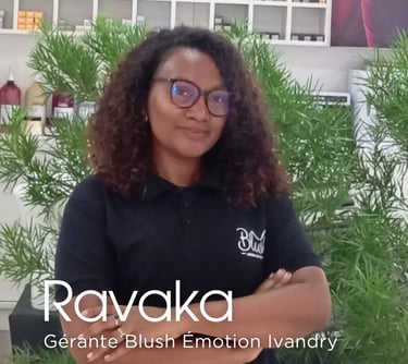 L’équipe de Blush Ivandry incarne l’excellence et la complémentarité : Ravaka, coiffeuse-esthéticienne et responsable du salon, veille à chaque détail. Joël, coiffeur coloriste visagiste, sublime les cheveux avec précision, Lalao, prothésiste ongulaire, révèle la beauté des mains, tandis que Francis, coiffeur-barber, maîtrise l’art du style masculin.