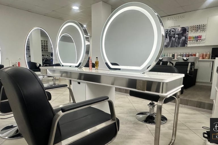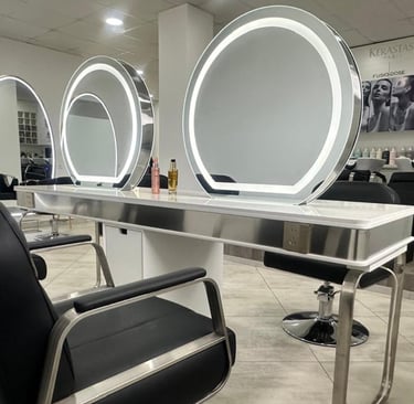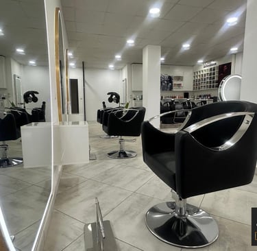 Un espace coiffure élégant et lumineux composé de 7 postes de coiffage, où chaque geste expert révèle la beauté du cheveu dans une ambiance raffinée et apaisante.