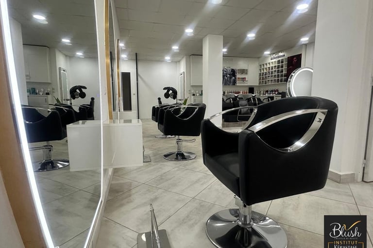 Blush Ivandry met à disposition de sa clientèle exigeante 7 postes de coiffage, 3 bacs a shampoing, une salle VIP avec fauteuil pédicure massant et bac à shampoing dédié, et 1 salle d'esthétique Guinot.